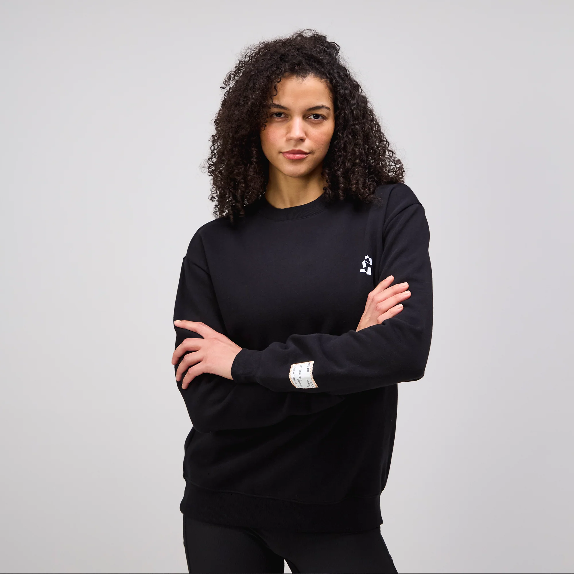 Cotton Fleece Abstract Grid Crewneck - Unisex, Black